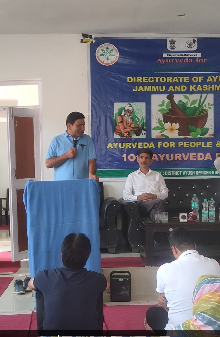 Kupwara, September 24, 2025* – The District Ayush Department Kupwara marked the 10th International Ayurveda Day with vibrant enthusiasm at the Ayush Health and Wellness Centre in Kralpora, celebrating the timeless wisdom of Ayurveda under the theme ‘Ayurveda for People & Planet.’ The event drew a diverse crowd of locals, healthcare professionals, and students, highlighting the growing acceptance of traditional Indian medicine in this border district and its role in promoting holistic health and environmental harmony.Organized under the leadership of District Ayush Officer Dr. Raja Amjad Ali Khan, the day-long program featured a range of activities aimed at showcasing Ayurveda’s preventive and sustainable health benefits. Held on September 23 in sync with nationwide observances, the event transformed the Kralpora centre into a lively hub of wellness, education, and community engagement, aligning with the Ministry of Ayush’s vision to integrate traditional practices into modern healthcare and reduce disease burdens across ecosystems.Over 150 residents benefited from free consultations, including pulse diagnosis (Nadi Pariksha) and previews of Panchakarma therapies, alongside the distribution of herbal kits containing turmeric, ashwagandha, and detox teas tailored for seasonal wellness. Special emphasis was placed on women and children, with sessions on maternal health and pediatric nutrition through Ayurvedic principles. Awareness workshops explored herbal remedies for lifestyle disorders like stress and diabetes, while linking Ayurveda’s eco-friendly practices to planetary health through yoga and sustainable living tips.The celebrations kicked off with dynamic Surya Namaskar demonstrations and folk dances infused with Ayurvedic motifs, fostering a festive spirit. Local ASHA workers and volunteers ensured robust participation from surrounding villages, amplifying outreach.