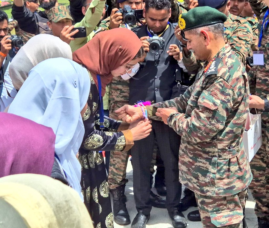Students tie rakhi to Army Chief at Kargil War Memorial