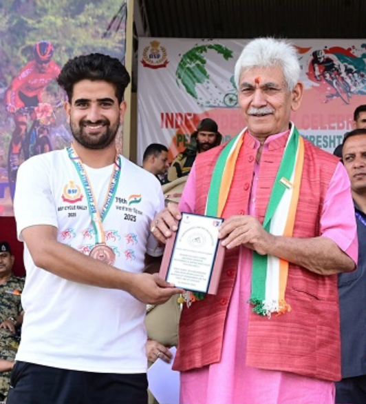 LG Manoj Sinha felicitates 79 cyclists in BSF’s ‘Pedal for Ek Bharat, Shreshtha Bharat’ rally