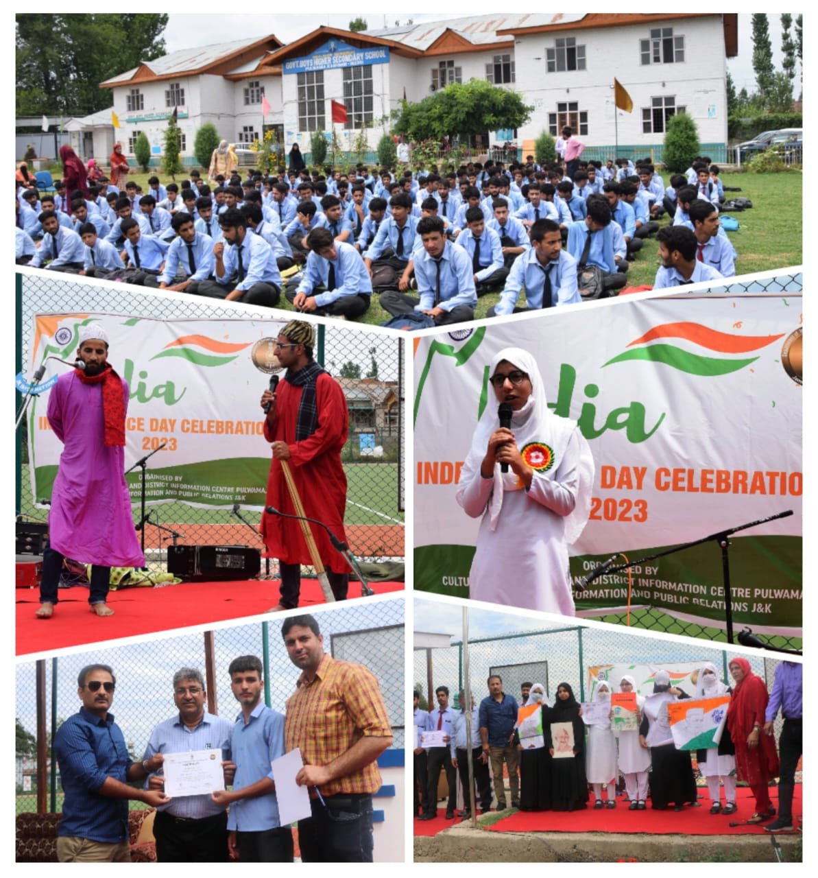 PULWAMA, AUGUST 08: The Cultural Unit Kashmir, DIPR in collaboration with District Information Centre Pulwama today organized a Short Play (Nukad Natak) under the banner of ‘Azadi Ka Amrit Mahotsav’ (AKAM) and recently launched campaign ‘Meri Maati, Mera Desh’ at Boys Higher Secondary School (BHSS) Pulwama.