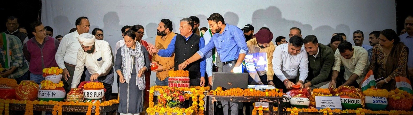 JAMMU, OCTOBER 22: The Meri Maati Mera Desh campaign witnessed a grand gathering at Teachers Bhawan today as Amrit Kalash from various blocks and municipalities of the district were heartily welcomed.
