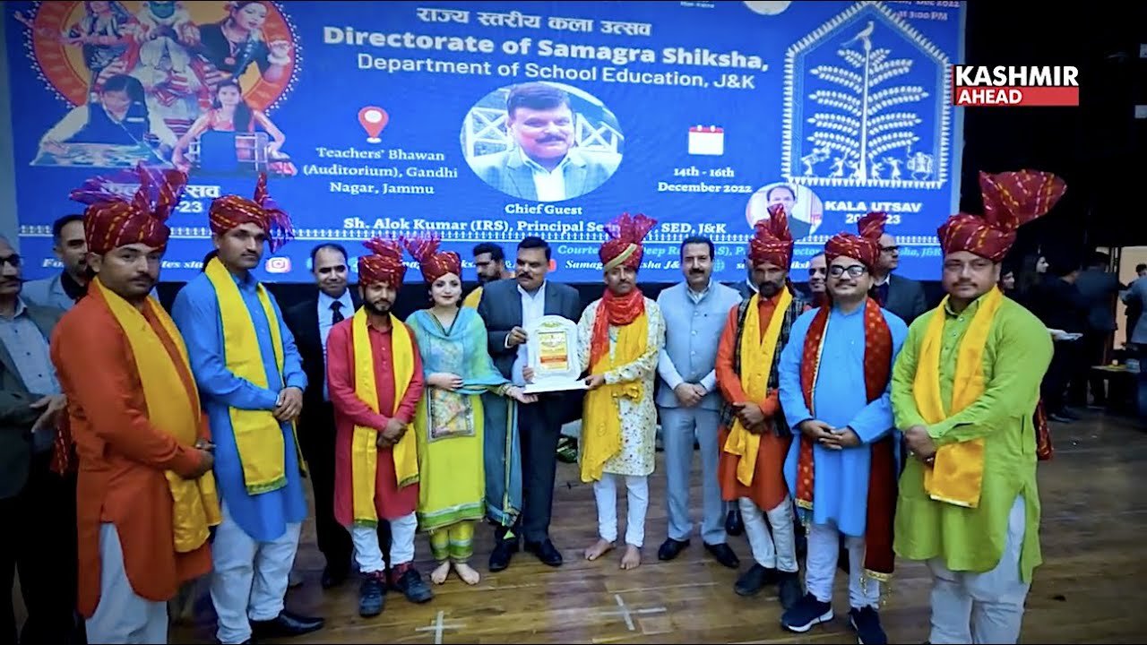 Speaking at the UT Level Kala Utsav 2022 organised by the Directorate of Samagara Shiksha, Jammu & Kashmir, Alok Kumar, Principal Secretary, School Education Department in Jammu & Kashmir said, the talent present in our students should be explored, nourished and nurtured so that the children are able to express their artistic talent fully. This is one channel of education. That is why in National Education Policy (NEP), art and culture has been presented as a very important tool. A girl winning first prize at the Kala Utsav programme in the UT said that she was very happy to participate and see others performing. She said it is a wonderful platform. Another performer said that because of the Kala Utsav, her talent emerged. She was not aware that she would perform the folk dance so well that she would be selected at the UT Level. The audience saw talented children from the whole of Jammu & Kashmir who got selected in various fields performing on stage and who will go on to the national level competition. People thanked the Department of School Education for creating an opportunity to spread knowledge about the Dogri art to all.