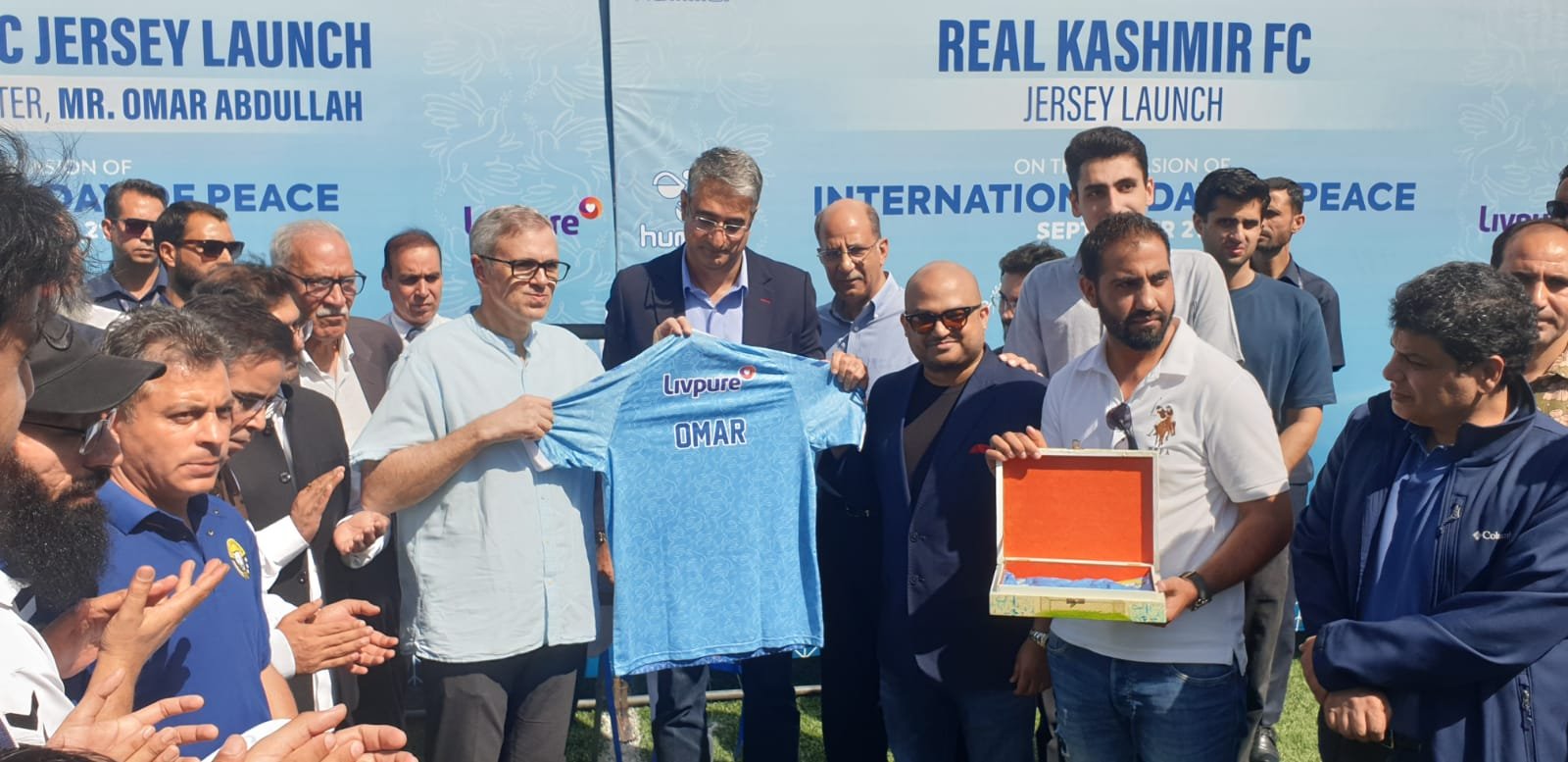Srinagar, 22 September , 2025: Chief Minister Omar Abdullah unveiled the special edition “Peace Jersey” of Real Kashmir FC, designed in collaboration with the iconic Danish sportswear brand Hummel, at the TRC Ground Srinagar.