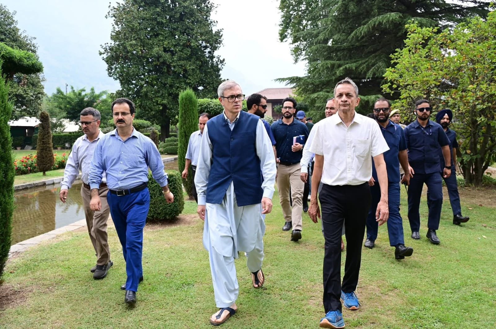 Srinagar, August 12, 2025 – Jammu and Kashmir Chief Minister Omar Abdullah conducted a spot review of restoration works at the historic Shalimar Garden in Srinagar, undertaken through a Corporate Social Responsibility (CSR) initiative by the JSW Foundation. The visit highlights the government’s focus on preserving the region’s cultural heritage while enhancing facilities for visitors.Chief Minister Abdullah toured key monuments within the Mughal Garden, including the Pink Pavilion, Rani Mahal, and Black Pavilion. Accompanied by the Commissioner Secretary of Floriculture, Gardens & Parks, Director Floriculture Kashmir, and JSW Foundation representatives, he received updates on the conservation progress. He issued directives to ensure timely completion of the restoration, emphasizing the preservation of the site’s heritage character alongside improvements to visitor amenities.