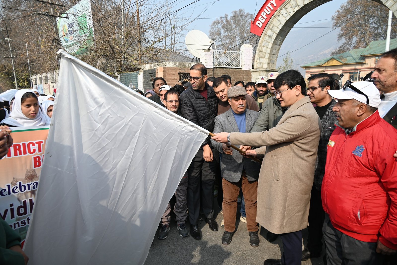 Baramulla, November 26,2025 – In a vibrant celebration of Constitution Day, DC Baramulla Minga sherpa flagged off a Mini Marathon from the DC Office, with hundreds of students participating with great enthusiasm. The event aimed to promote the values of democracy, liberty, and social justice, while encouraging youth to embrace healthy and active lifestyles.