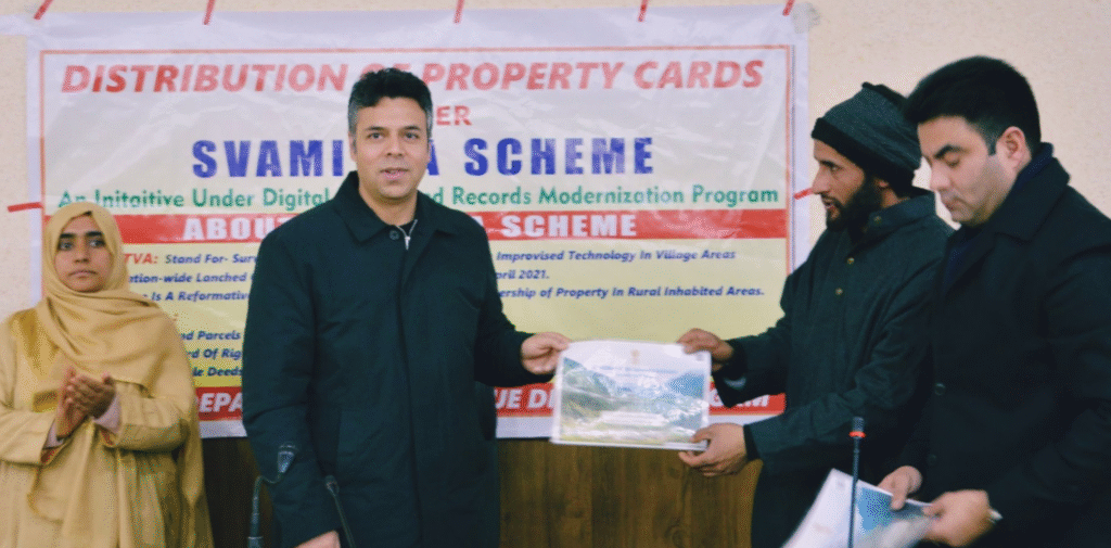 Budgam, January 3,2026-The Deputy Commissioner Budgam, Dr Bilal Bhat (IAS), on Tuesday distributed SVAMITVA Property Cards to beneficiaries from Tehsil Khag and Tehsil Khansahib at the Conference Hall, Budgam, marking a significant step towards strengthening legal ownership and rural empowerment.