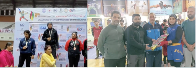 Handwara, April 11, 2025 – Young martial arts prodigy Mahreen Banday from Handwara has once again brought glory to her region, clinching a gold medal at the 8th Wushu Federation Cup 2025, held in Chhattisgarh from March 25 to 27. Representing the Khelo India Centre, Handwara, the talented Wushu athlete showcased her exceptional skill and determination, solidifying her reputation as one of India’s most promising young athletes.