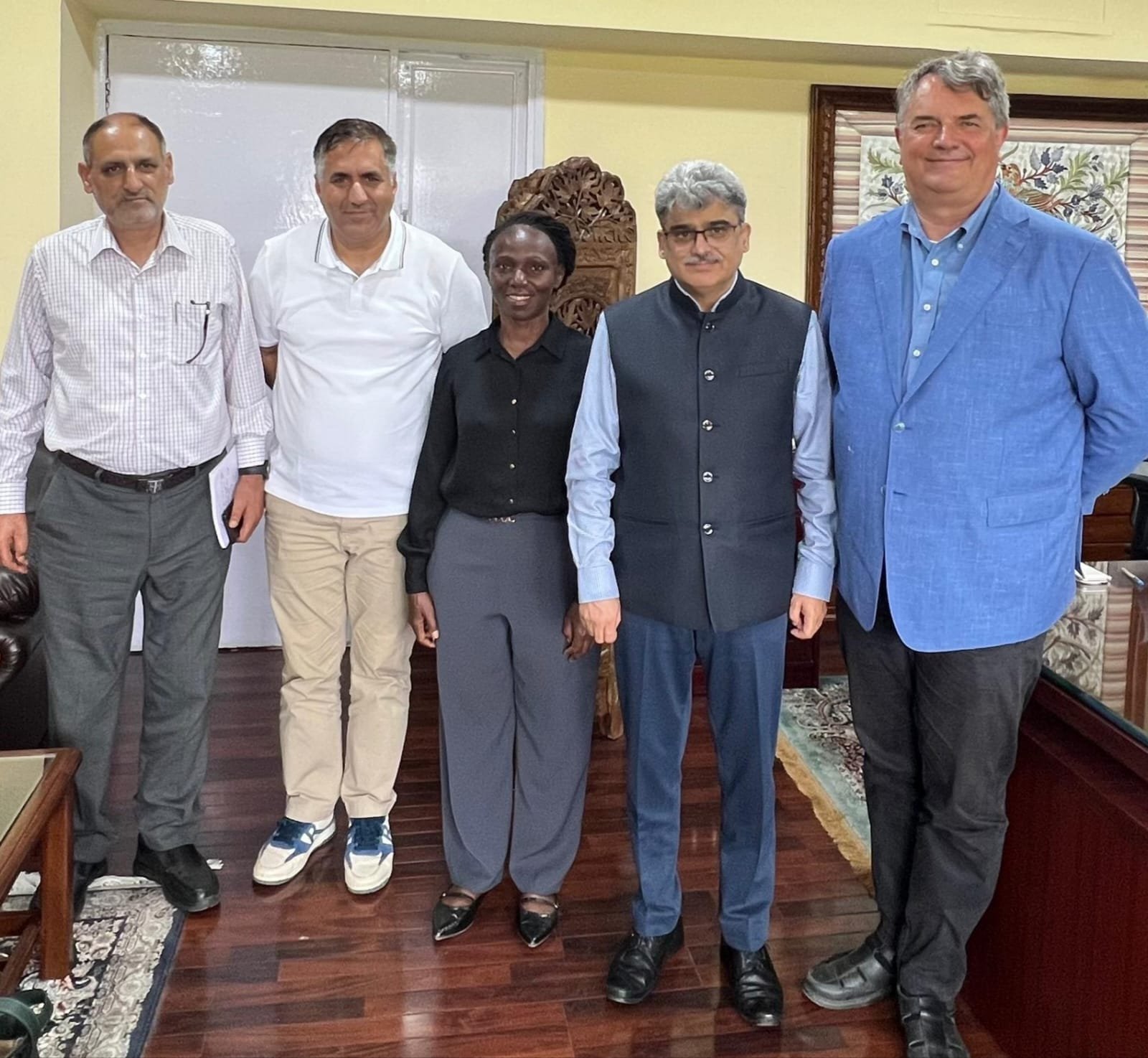 Srinagar, August 20, 2025 – Chief Secretary Atal Dulloo held comprehensive discussions with a delegation from the International Crops Research Institute for Semi-Arid Tropics (ICRISAT), Hyderabad, to advance Climate Smart Agriculture in Jammu and Kashmir. The meeting, aimed at fostering sustainable farming practices, explored the establishment of the Himalayan Centre of Excellence for Dryland Agriculture at SKUAST-Kashmir.Led by Dr. Stanford Blade, Deputy Director General of ICRISAT, the delegation included Senior Scientists Dr. Manzoor Dar and Dr. Demaris Odeny, with Professor Haroon Naik, Director Research, SKUAST-Kashmir, also in attendance. The proposed Centre is envisioned as a pioneering hub for research, innovation, and technology dissemination tailored to the Himalayan region’s unique agro-ecological conditions.