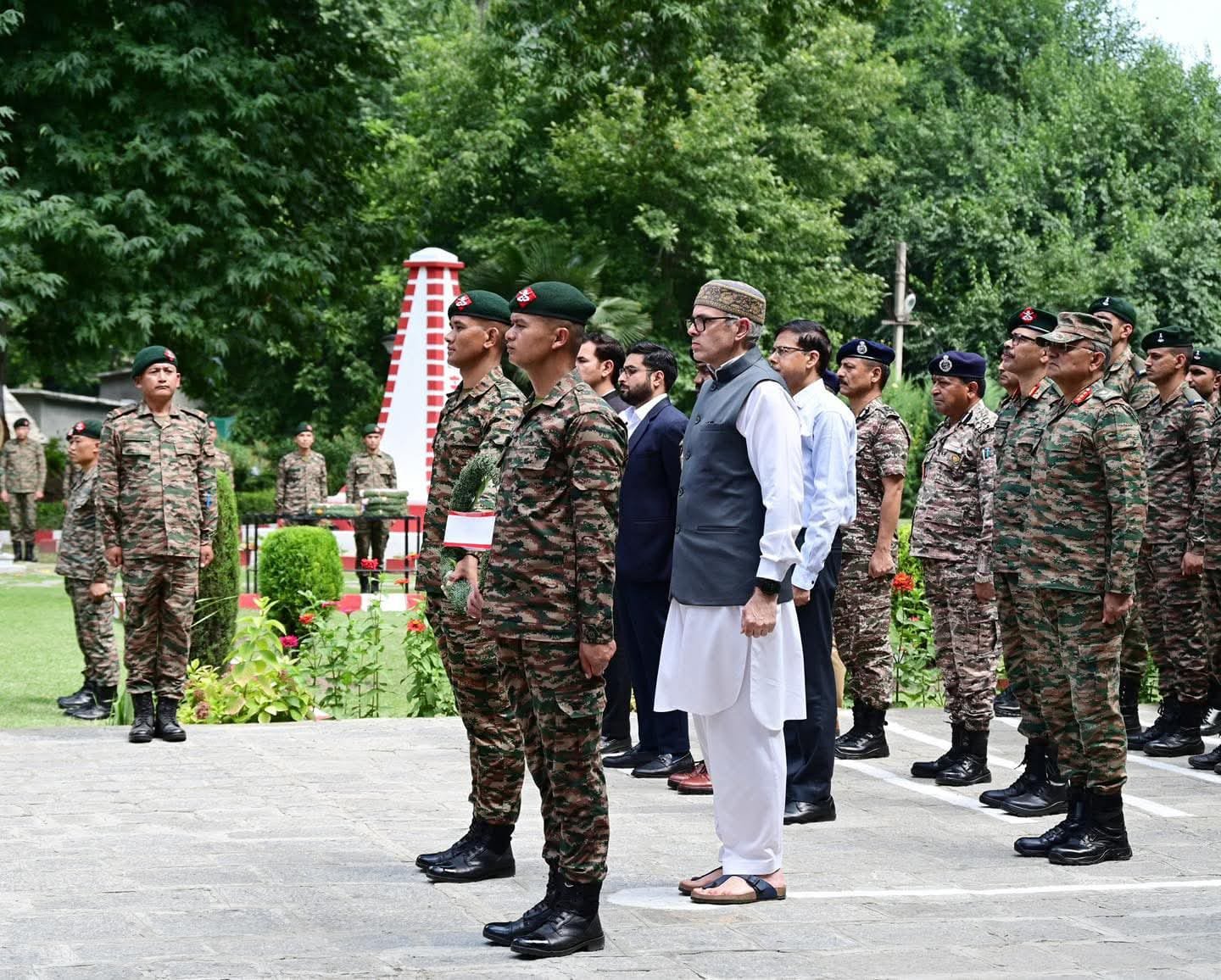 SRINAGAR, AUGUST 09, 2025 – Jammu and Kashmir Chief Minister Omar Abdullah paid heartfelt tributes to the brave soldiers who made the ultimate sacrifice during an ongoing anti-terror operation in Kulgam district. In a solemn ceremony at the Chinar Corps headquarters in Badamibagh, Srinagar, the Chief Minister laid a wreath to honour Lance Naik Pritpal Singh and Sepoy Harminder Singh, who lost their lives in a fierce gunfight with terrorists in the Akhal forest area.