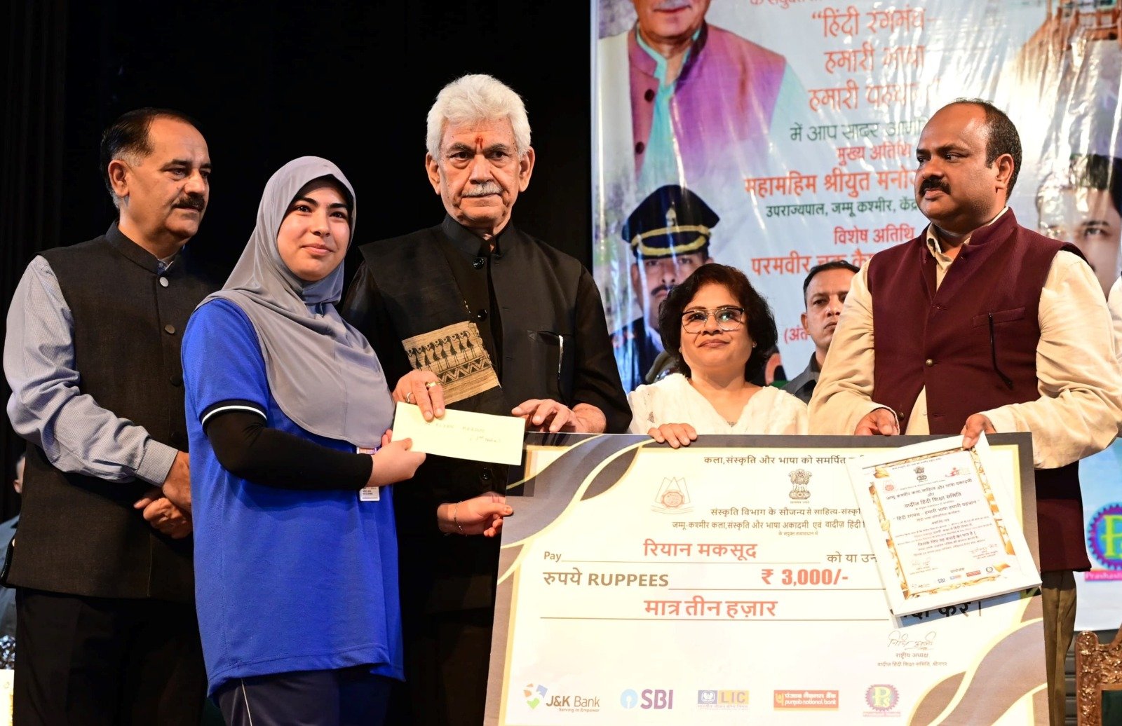 In his address, the Lieutenant Governor lauded the remarkable efforts of Wadies Hindi Shiksha Samiti in promoting the official language Hindi in Jammu and Kashmir. He said Hindi has emerged as a language that connects the country and reflects India’s shared cultural identity.