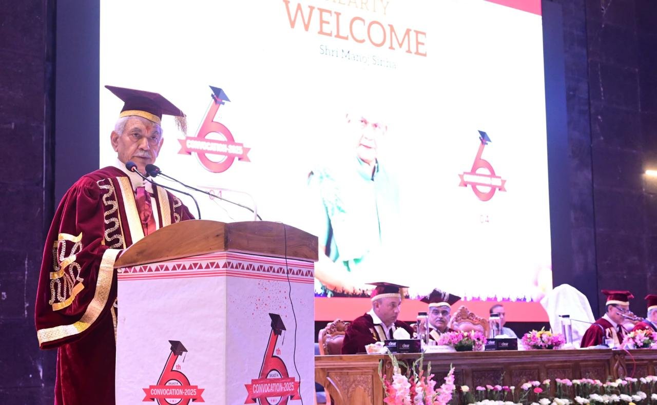 Srinagar, July 4, 2025 – The Sher-e-Kashmir University of Agricultural Sciences and Technology (SKUAST-Kashmir) marked a significant milestone with its 6th Convocation Ceremony held at the Shalimar Convention Centre in Srinagar. The event, graced by distinguished dignitaries, highlighted the university’s contributions to the agricultural sector in Jammu and Kashmir (J&K) and celebrated the remarkable achievements of its students, particularly women, who dominated the awards tally.Lieutenant Governor Manoj Sinha, also the Chancellor of SKUAST-K, addressed the gathering, commending the university for its role in creating a “competent and competitive human resource” and shaping the farm sector in the J&K Union Territory. He also praised SKUAST-K for its remarkable improvement in national and global rankings, positioning it as a leader in agricultural education and innovation. “It was a pleasure to address the 6th Convocation of SKUAST-Kashmir. I congratulate the university for its contributions and wish the students a bright future,” Sinha said.Union Minister for Agriculture, Farmers’ Welfare, and Rural Development, Shri Shivraj Singh Chouhan, served as the chief guest, emphasizing the success of the Holistic Agriculture Development Programme (HADP). “HADP is improving the income of 13 lakh farmer families in Kashmir and is being seen as a role model across India,” he stated. Chief Minister Omar Abdullah, the Pro-Chancellor of SKUAST-K, also attended, expressing pride in the achievements of female students.
