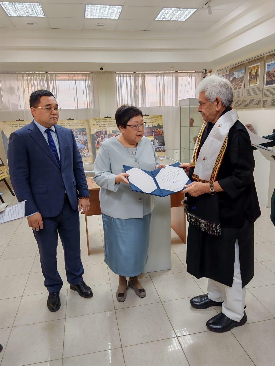 On his visit, LG Manoj Sinha formally transferred the International Buddhist Confederation (IBC) exhibitions and the National Museum of India to the *Kalmyk Museum. The artifacts include the artifacts featuring the *life, teachings, and spiritual legacy of Lord Buddha.