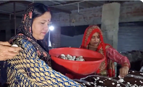 Kathua , November 21,2025: In a remarkable story of rural entrepreneurship, Lakhpati Didi Shakti Sharma from village Palli, Kathua has emerged as a shining example in mushroom cultivation. Beginning her journey with just 100 mushroom bags four years ago, she now manages an impressive 4,000 bags, producing nearly one quintal of mushrooms daily, marking a significant rise in local agri-based income generation.