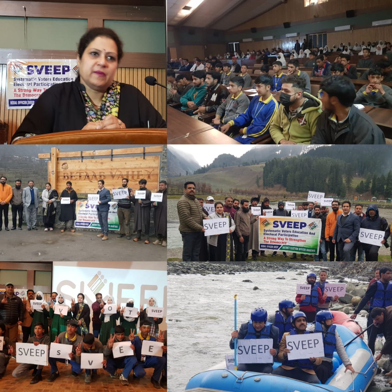 ANANTNAG, APRIL 03: With an aim to enhance public participation in the upcoming General Elections to Lok Sabha 2024, the designated SVEEP Nodal Officer, Sapna Kotwal today oversaw a mega Voter Awareness programme under the Systematic Voters’ Education and Electoral Participation (SVEEP) initiative at the tourist destination of Pahalgam.