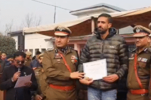 Srinagar , December 6,2025 : The Jammu & Kashmir police honoured three civilians who acted as first responders during the Nowgam Police Station blast, along with Nazakat Shah,