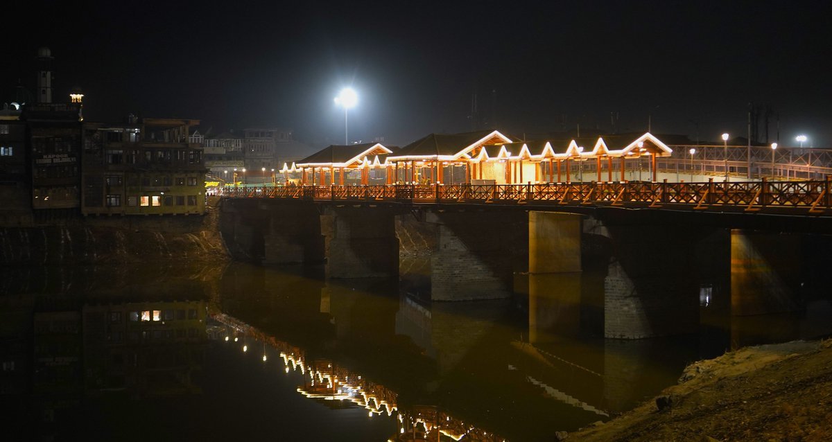 Srinagar, January 21,2026-The newly renovated Amira Kadal pedestrian bridge in Srinagar was illuminated on Tuesday evening, following its dedication to the public earlier in the day by Lieutenant Governor Manoj Sinha.