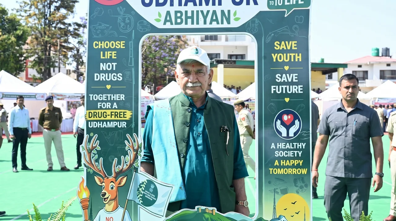 Keywords: Drug-Free J&K, Udhampur padyatra, Manoj Sinha anti-drug campaign, Jammu Kashmir drug menace, youth awareness rally, anti-narcotics drive J&K, LG Sinha speech, fight against drugs India, Udhampur news