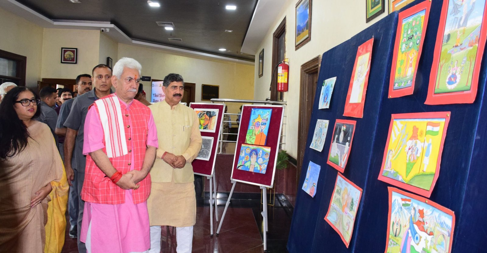 Jammu, J&K – Lieutenant Governor Manoj Sinha attended the valedictory function of ‘Viksit Bharat Ke Rang, Kala Ke Sang’, a vibrant art workshop organized under Sewa Parv. The event showcased the creativity of young artists while highlighting the role of art in fostering cultural values and innovation.
